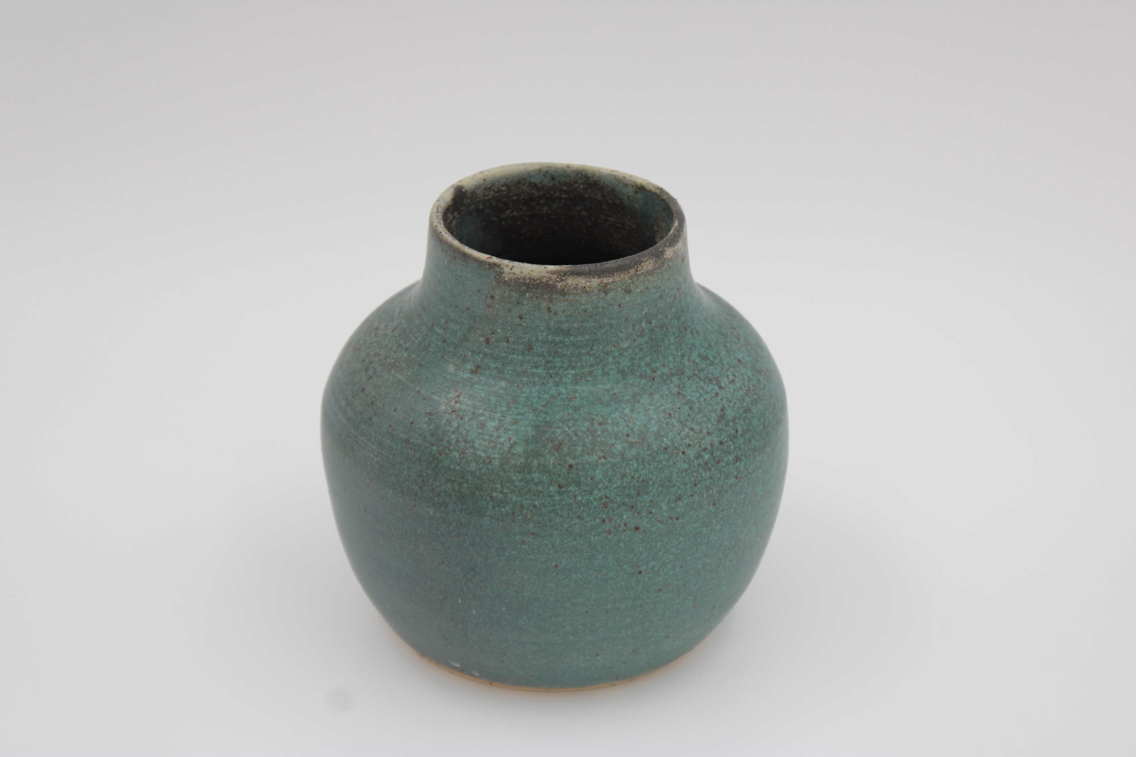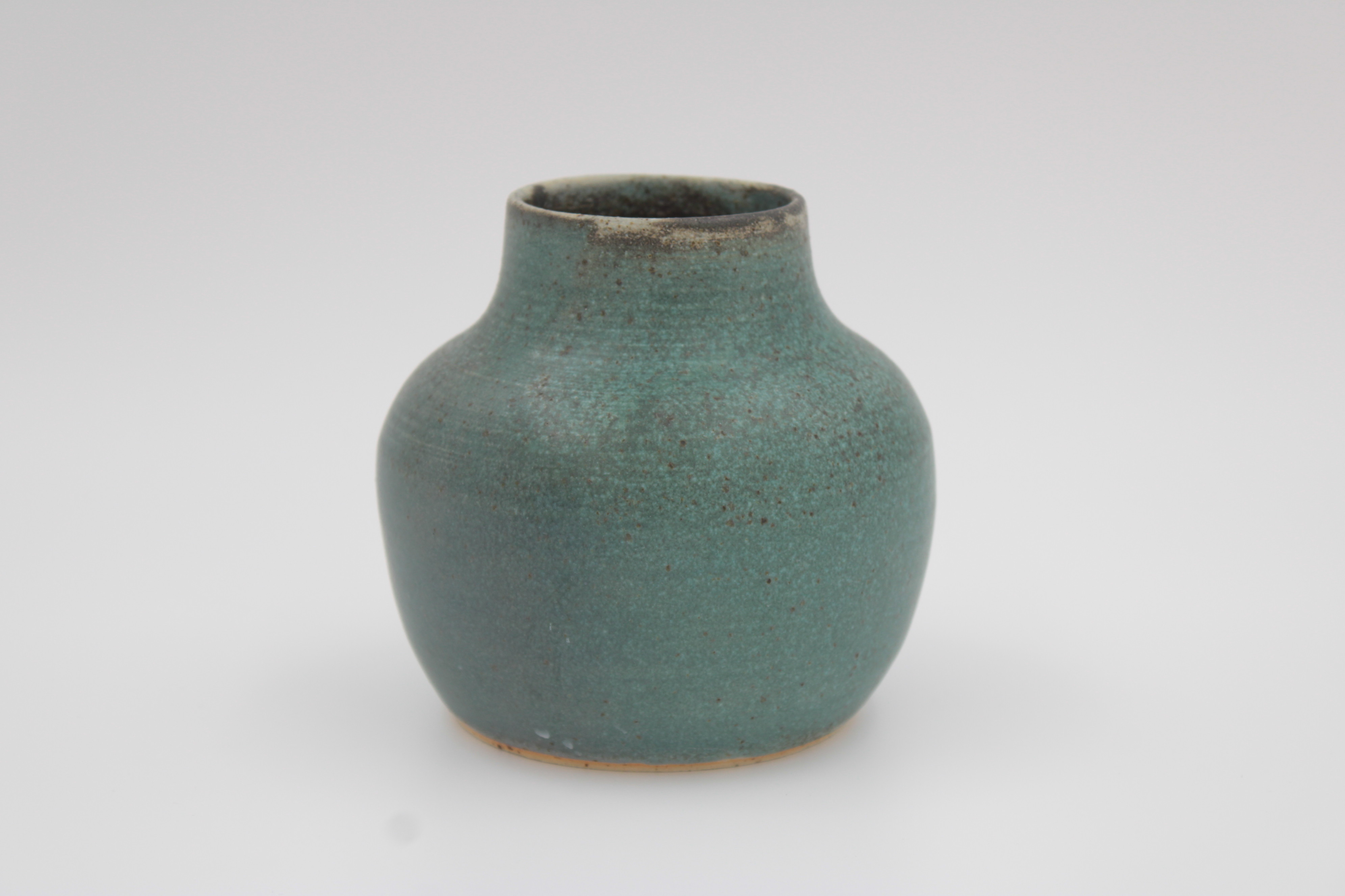 Vase med grøn mat glasur på ler med pyritter.