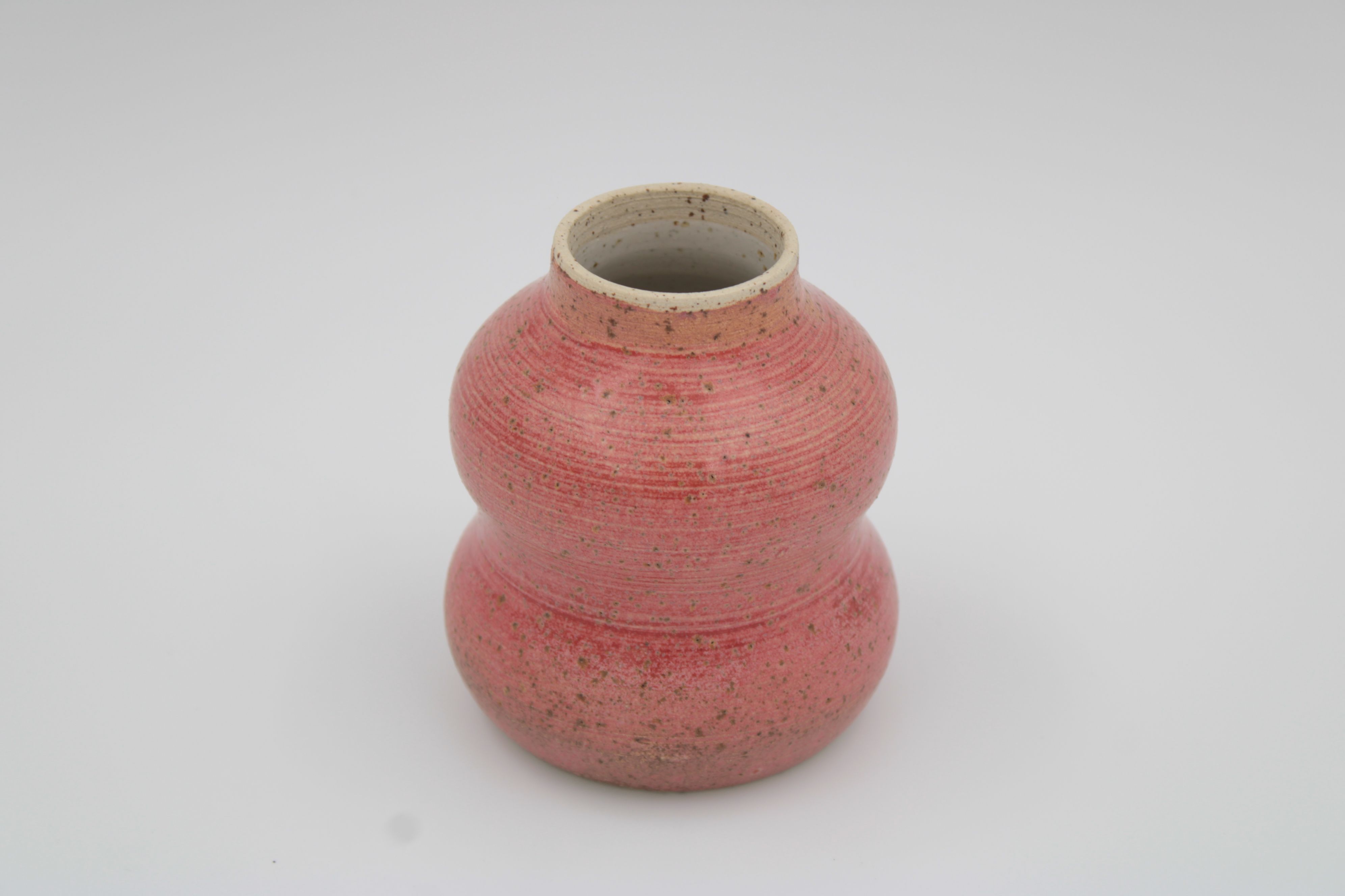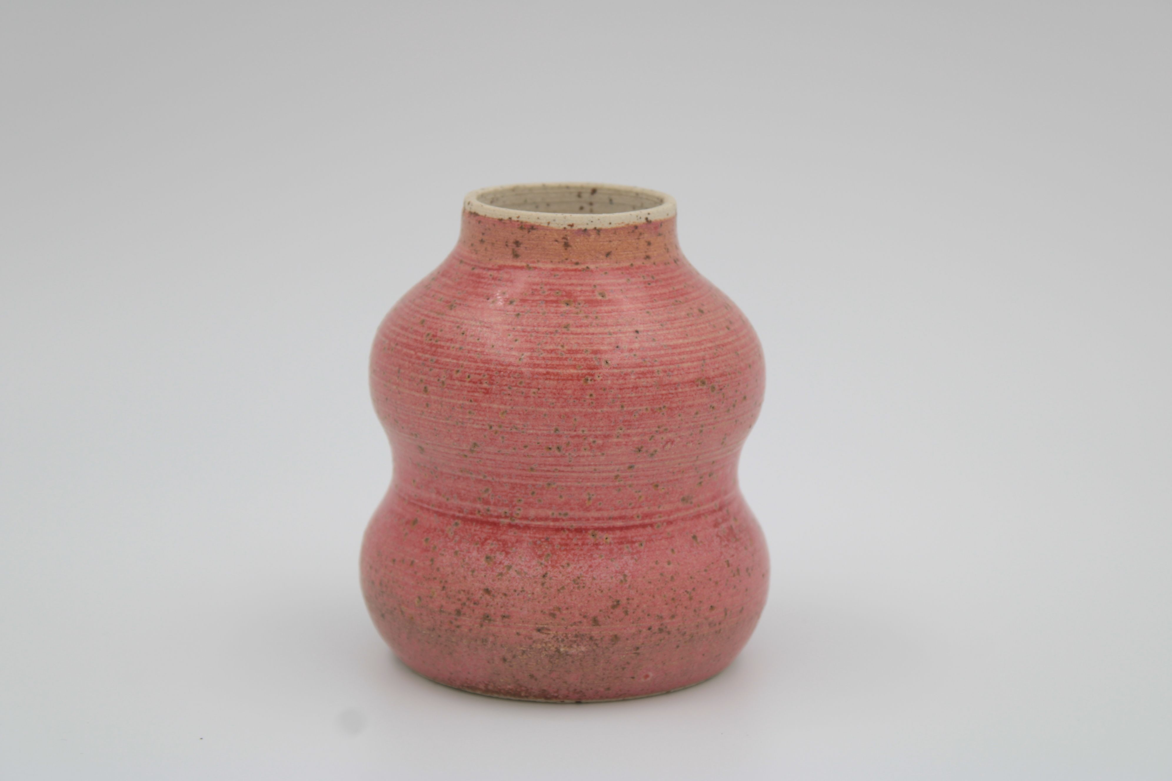 Lille vase med lyserød mat glasur på ler med pyritter.