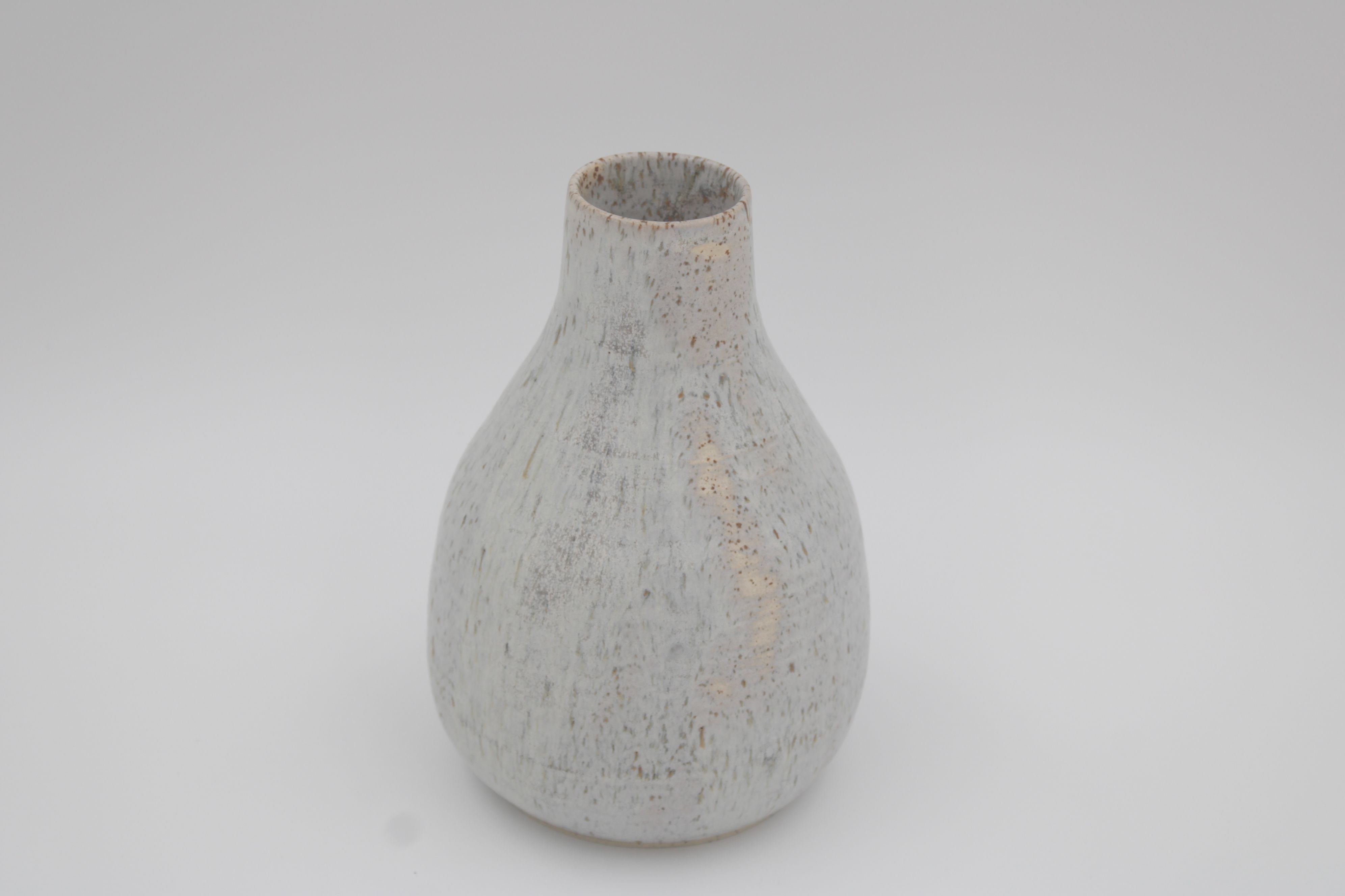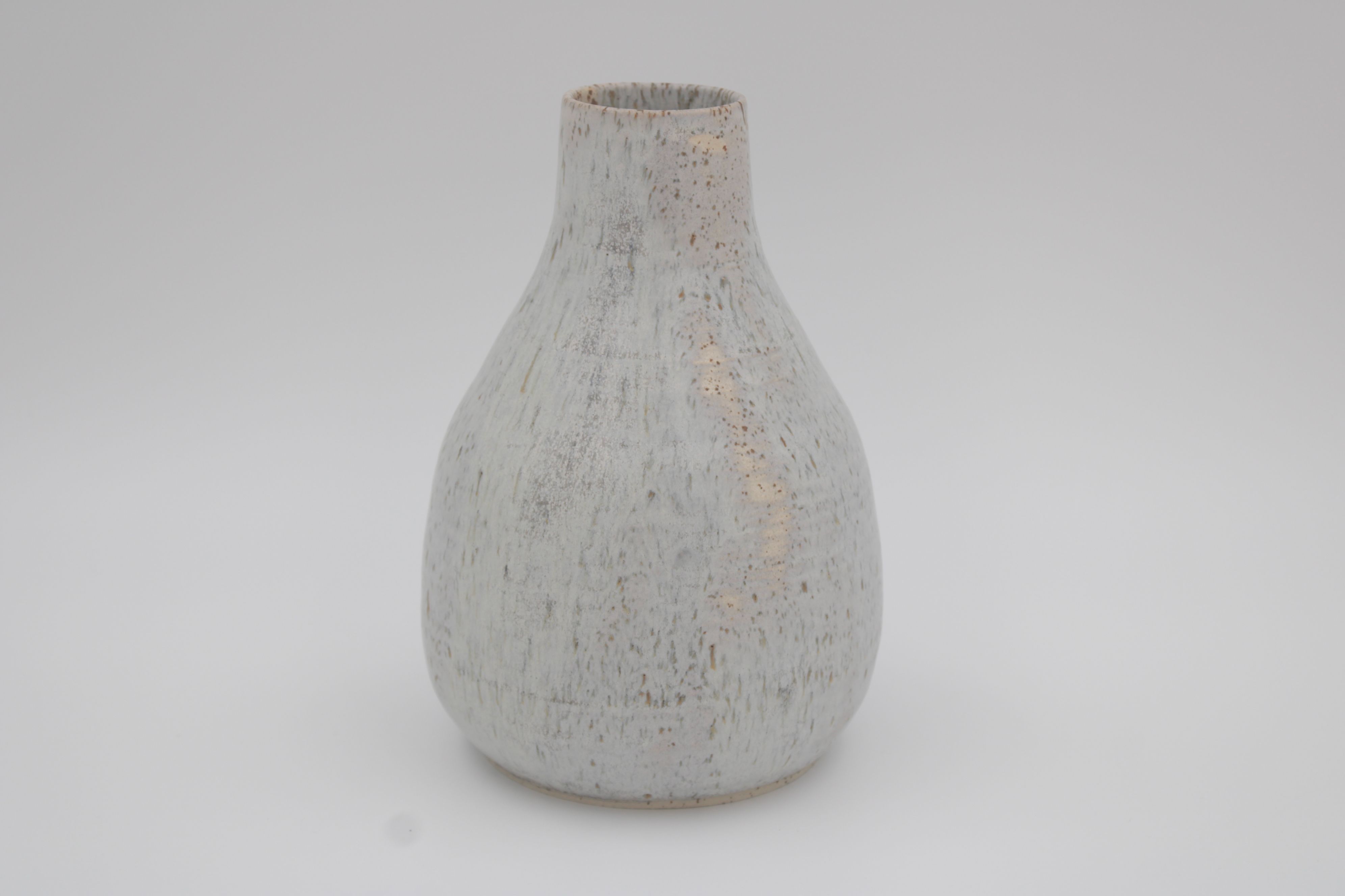 Vase med blågrå mat glasur på ler med pyritter.